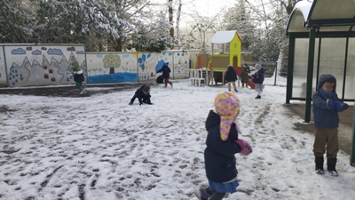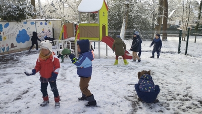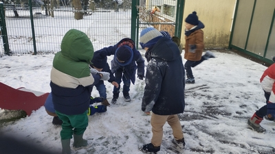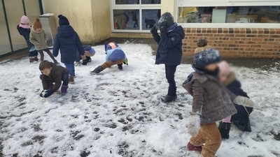 "Ce matin, les élèves de grande section ont eu la joie de profiter de la neige dans la cour de l’école. Entre émerveillement, jeux et éclats de rire, ce moment a été l’occasion de vivre une belle expérience collective, tout en observant la nature autrement."