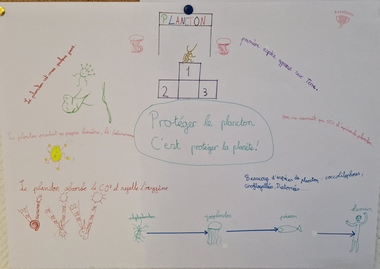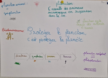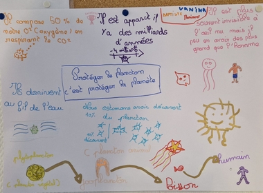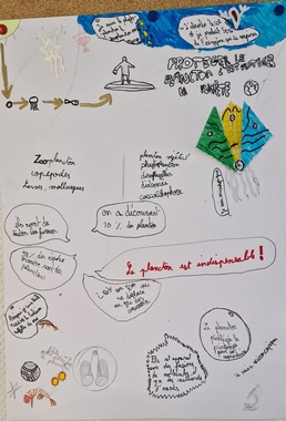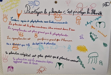 Après un webinaire interactif avec des chercheurs, au cours duquel ils ont pu poser leurs questions et prendre des notes, les élèves ont travaillé en équipes pour réaliser des affiches autour du slogan : « Protéger le plancton, c’est protéger la planète ! »